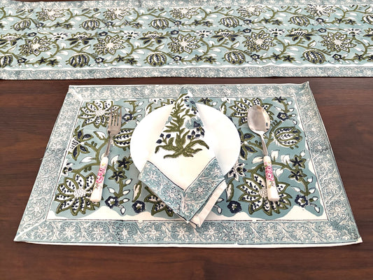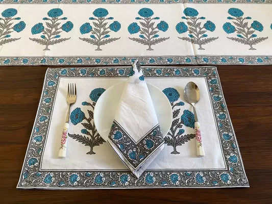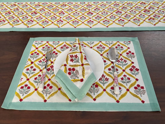 Hand Blockprinted Dining mats Napkins Runner (set of 4)