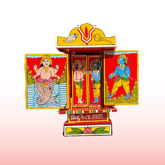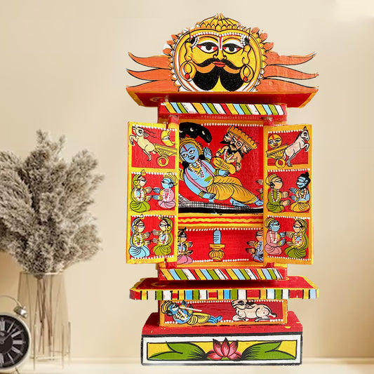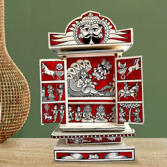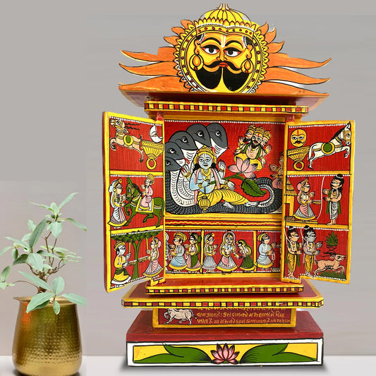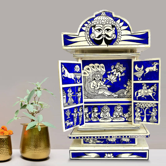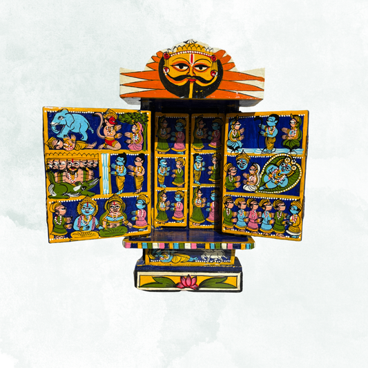 The Kavad art of Rajasthan is deeply rooted in religious and folk traditions, showcasing stories from the Ramayana, Mahabharata, Krishna Leela, and local legends. The paintings are vibrant, detailed, and expressive, capturing movement and emotions in a stylized yet dramatic manner.