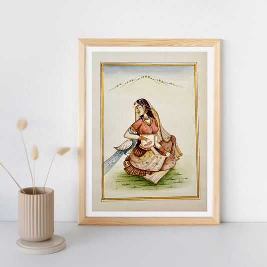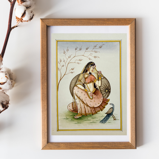 Rajasthani Handmade Miniature painting Ragini with Peacock