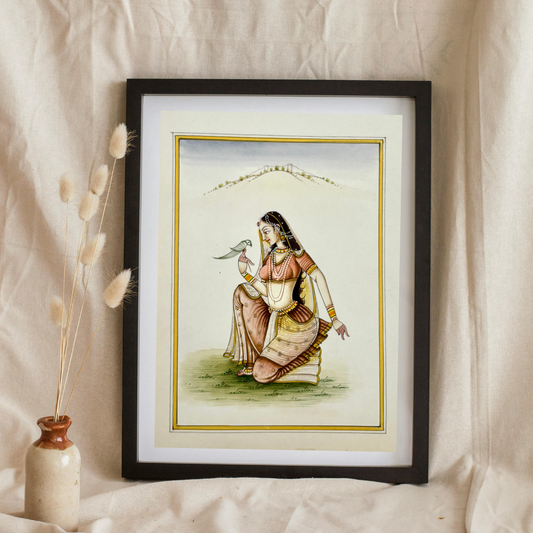 Rajasthani Handmade Miniature painting Ragini with Parrot