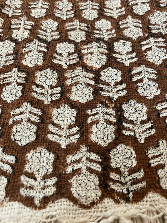 Hand block printed Cotton Sofa Throws - Brown Floral print