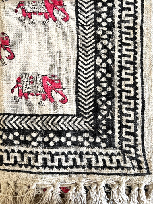 Hand block printed Cotton Sofa Throws-Pink Elephant design