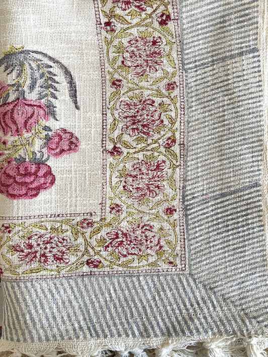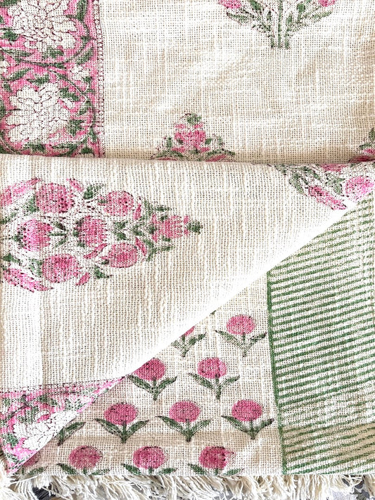 Hand blockprinted Cotton Sofa Throws-Pink Floral