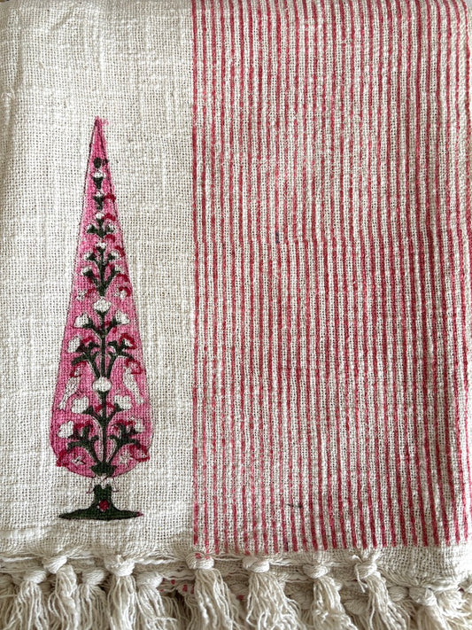 Hand blockprinted Cotton Sofa Throws-Pink Mughlai