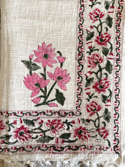 Hand block printed table runner | Pink | Floral design