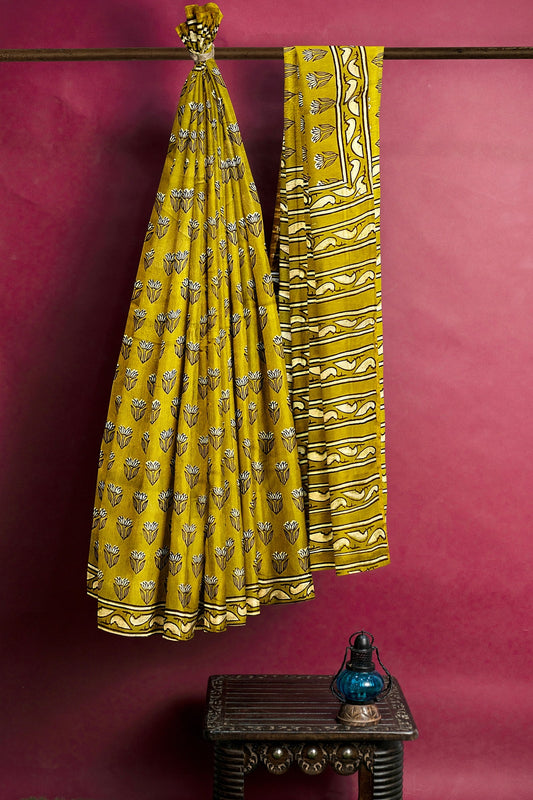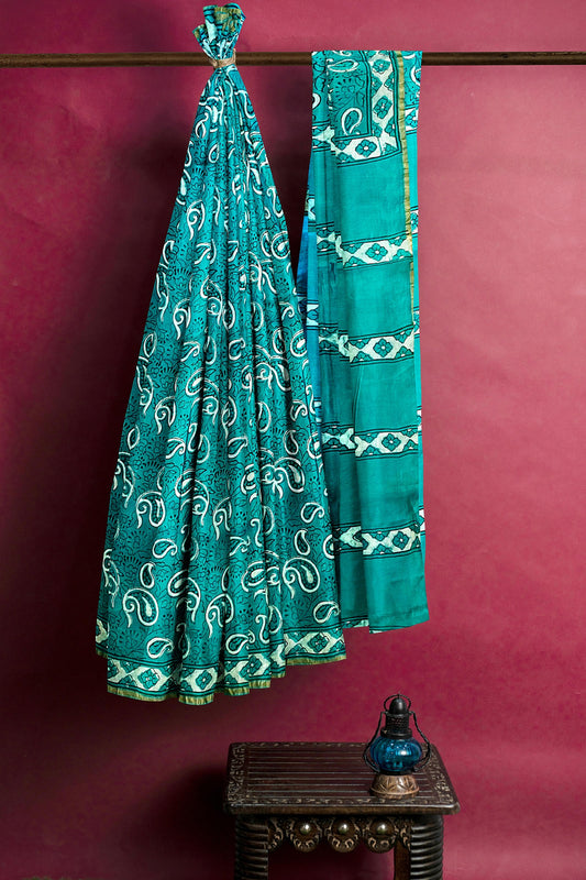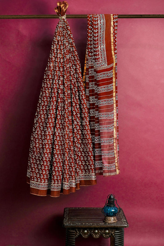 Hand Blockprinted Chanderi Silk Saree with Zari Pallu