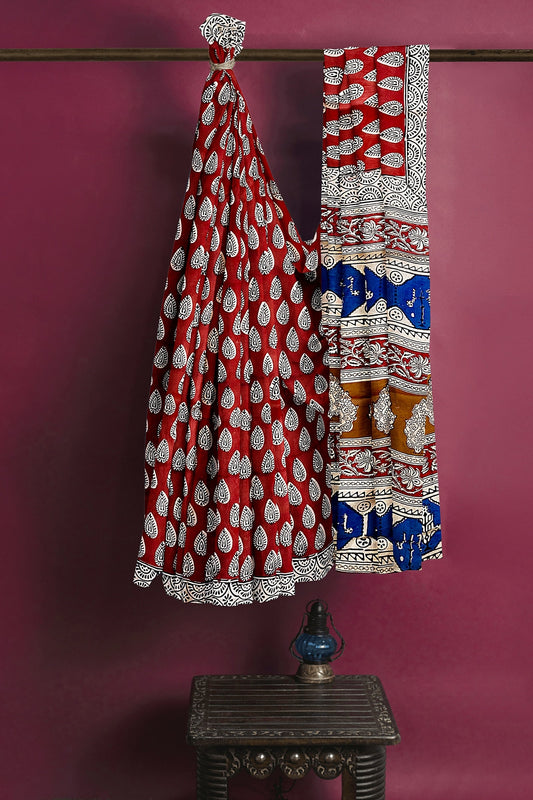 Hand Blockprinted Kalamkari Cotton Double Bedsheet With Pillow Covers