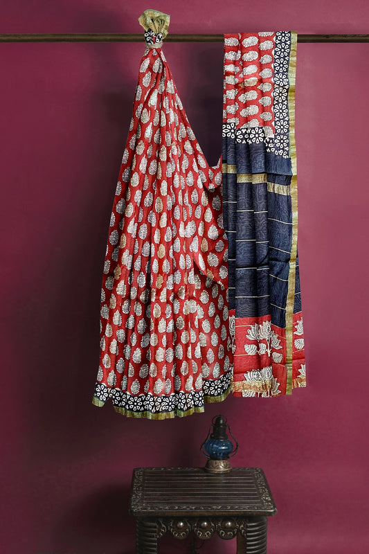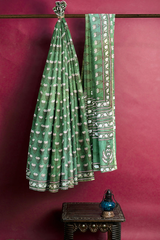 Hand Blockprinted Chanderi Silk Saree