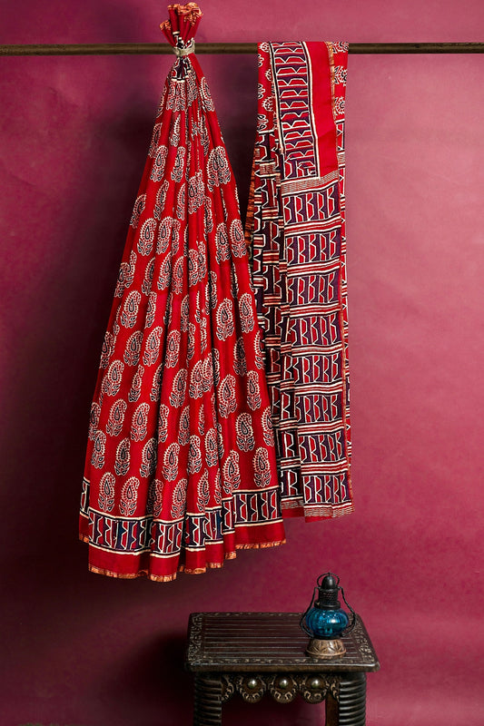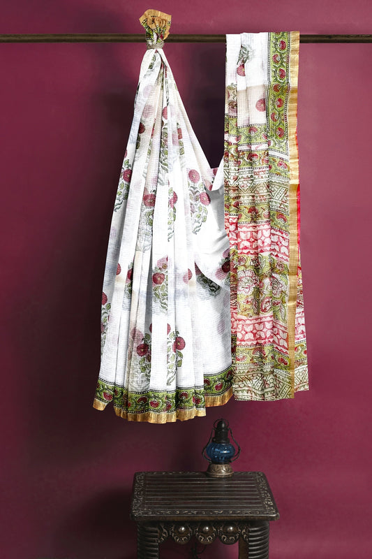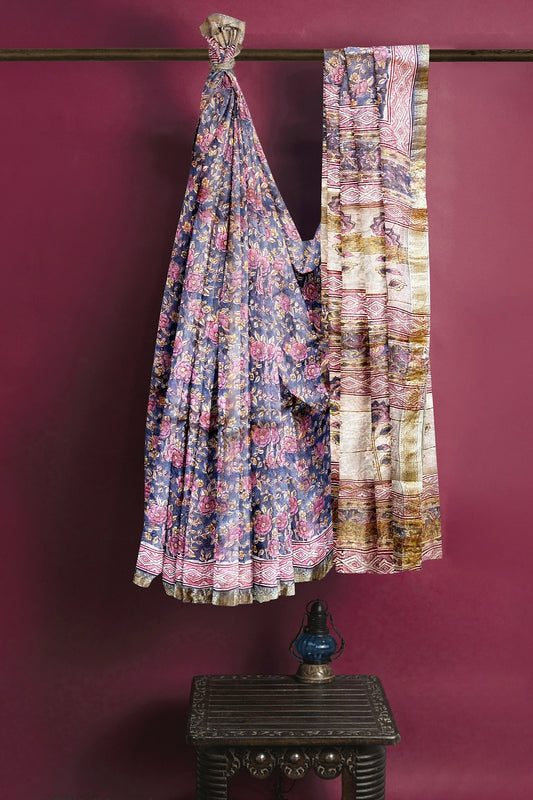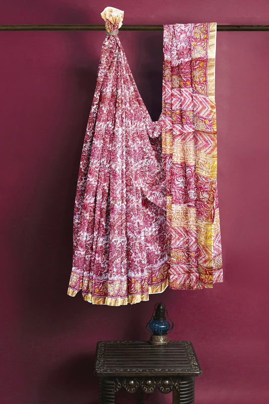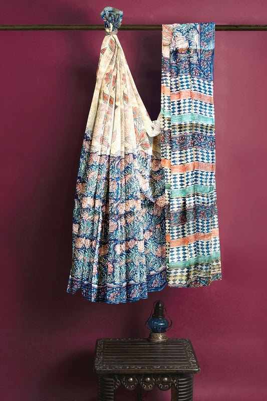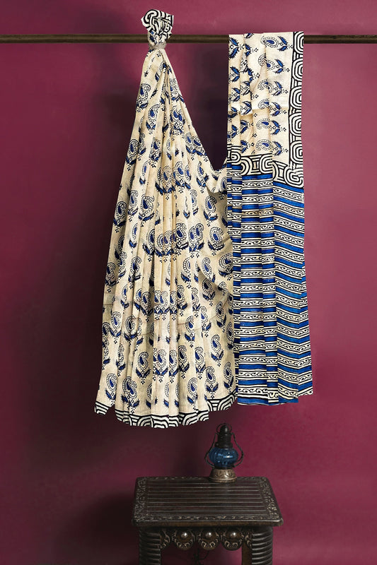 Hand Blockprinted Maheshwari Saree