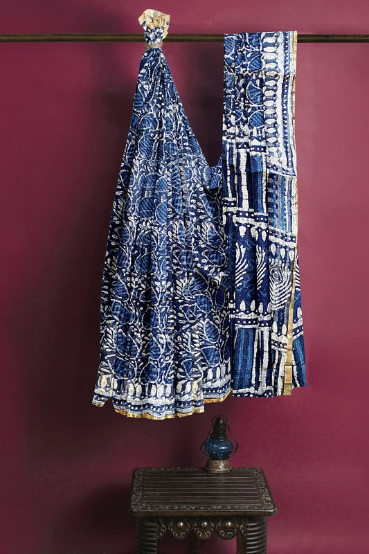 Block printed Kota Doriya Saree-Indigo