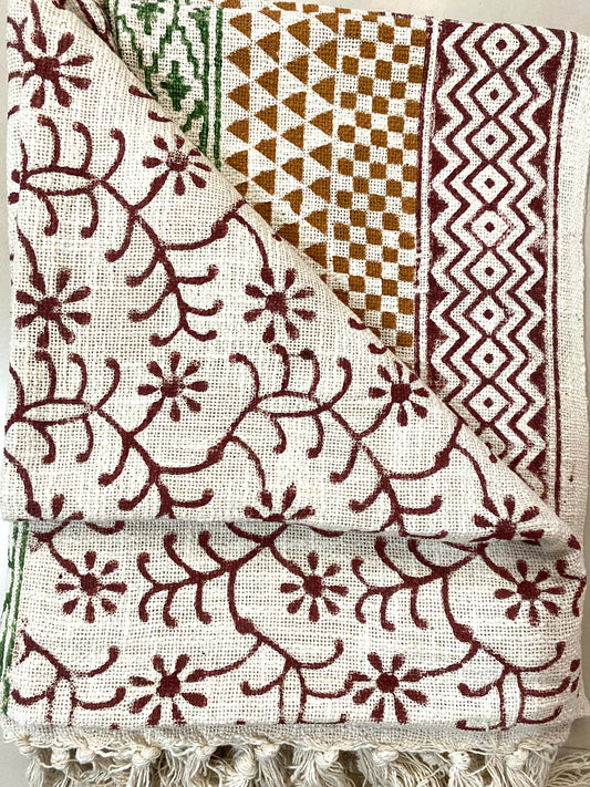 Hand Blockprinted Cotton Sofa Throws - Maroon floral - Green border
