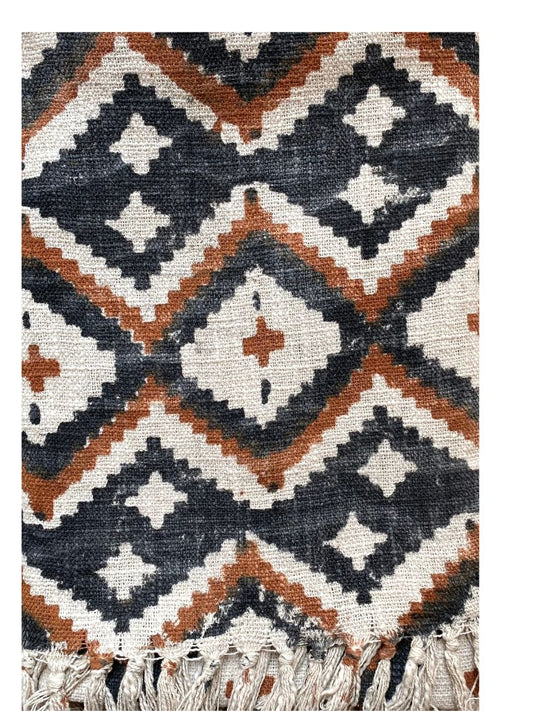 Hand blockprinted Cotton Sofa Throws-Triangle pattern